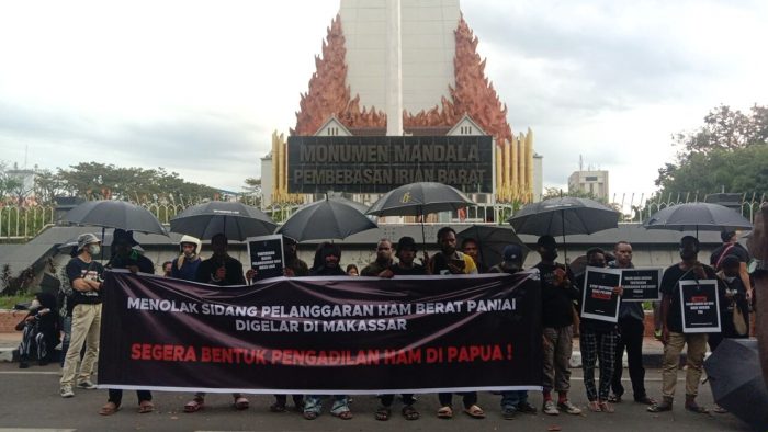 Aksi Kamisan Makassar pun menyatakan sikapnya; Menolak Sidang Pelanggaran HAM Paniai Berdarah Digelar di Makassar, Segera Bentuk Pengadilan HAM di Papua! dan menuntut: