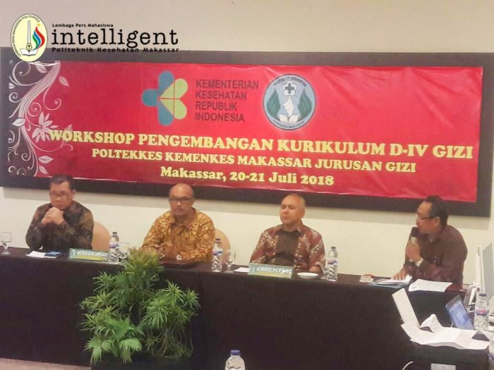 MAKASSAR, INTELLIGENT – Jurusan Gizi Poltekkes Kemenkes Makassar datangkan stakeholder (Organisasi/individu terkait-Red) dari Rumah Sakit, Puskesmas, Industri Produksi Makanan, Organisasi Profesi dan Unit Penyelenggara Pendidikan, serta Dosen pada Workshop Pengembangan Kurikulum D-IV Gizi di Hotel Dalton, Sabtu (21/07).