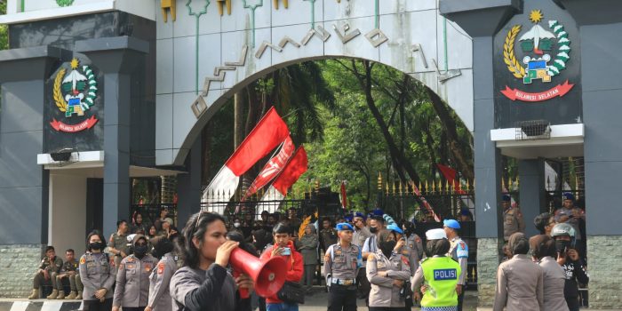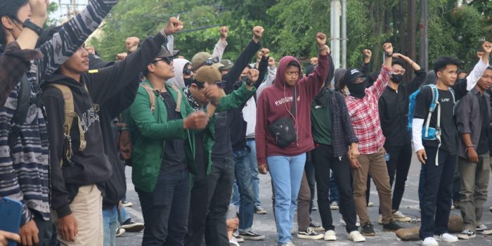MAKASSAR, INTELLIGENT — Berbagai elemen mahasiswa yang tergabung dalam front makassar gelar aksi unjuk rasa tolak kenaikan bahan bakar minyak (BBM). Aksi berlangsung di sekitaran Stasiun Pengisian Bahan Bakar Umum (SPBU), Jl. Urip Sumoharjo, Karampuang, Senin (05/09).