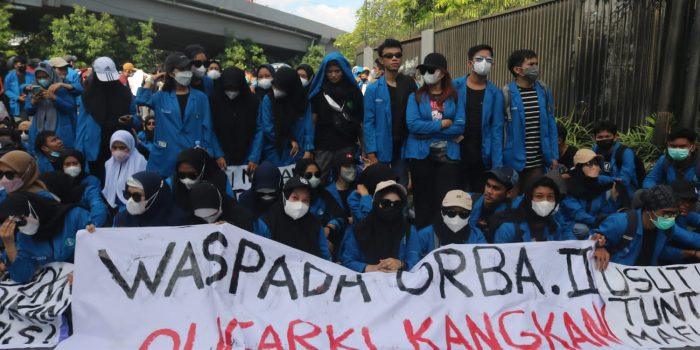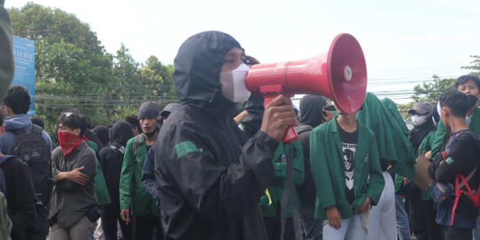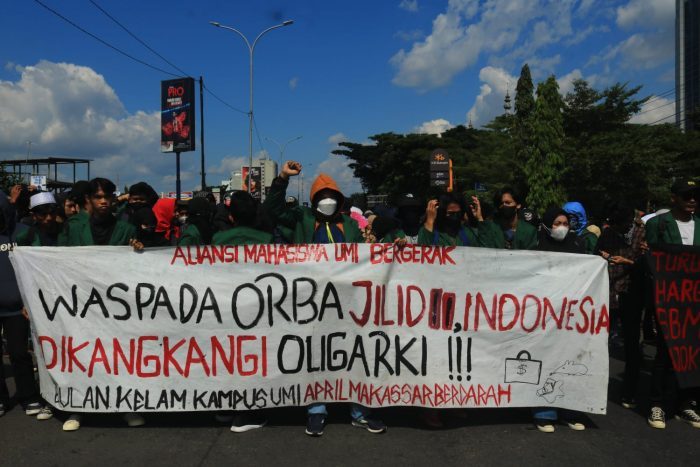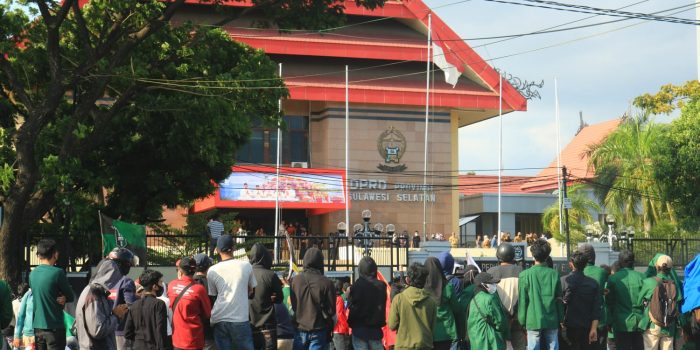 MAKASSAR, INTELLIGENT — Aliansi Mahasiswa Makassar (AMM) menggelar aksi terkait isu “Reformasi Jilid II” di depan gedung DPRD Provinsi Sulawesi Selatan, Jalan Urip Sumoharjo, Senin (11/04).