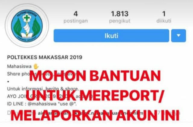 MAKASSAR, INTELLIGENT – Sebuah akun Instagram atas nama @poltekkesmks.student dicurigai sebagai akun palsu yang mengatasnamakan Badan Eksekutif Mahasiswa (BEM) Poltekkes Kemenkes Makassar (PKM).