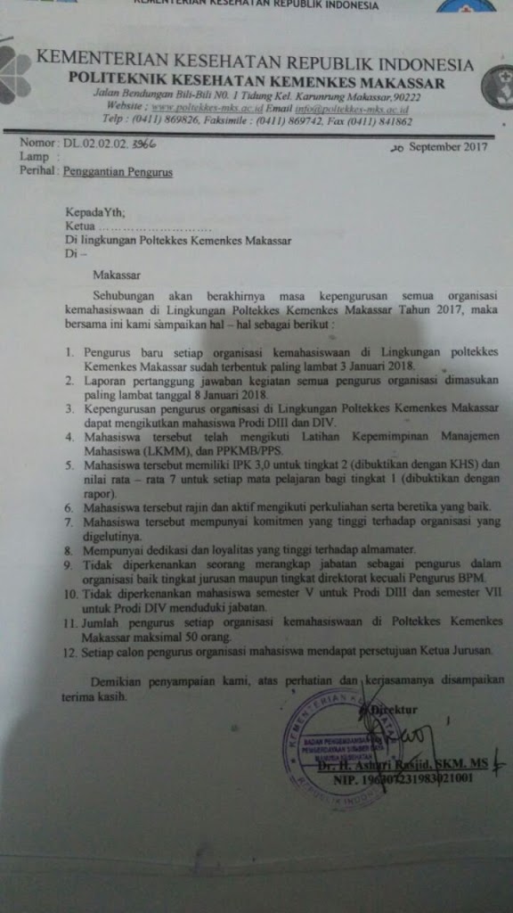 Sebelumnya Direktorat telah mengeluarkan surat pada akhir September lalu, nomor DL 02.02.02.3966 mengenai pergantian pengurus lembaga yang didalamnya terdapat persyaratan calon pengurus, termasuk aturan IPK yang harus memenuhi 3,00 ( tiga koma nol nol ) .