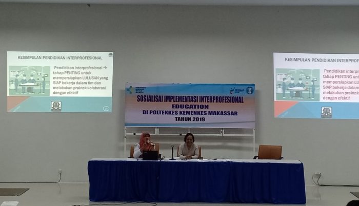 MAKASSAR, INTELLIGENT – Praktik Kerja Lapangan (PKL) yang dilakukan oleh mahasiswa tingkat akhir Poltekkes Kemenkes Makassar (PKM) , tahun ini mengalami perubahan sistem menjadi PKL sistem Interprofessional Education (IPE) Colaborative Practice (CP) dengan tujuan dapat meningkatkan layanan kesehatan pada masyarakat.