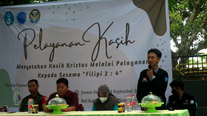 MAKASSAR, INTELLIGENT— Unit Kegiatan Mahasiswa (UKM) Persekutuan Mahasiswa Kristen (Permakris) beserta Badan Eksekutif Mahasiswa (BEM) Poltekkes Kemenkes Makassar (Polkesmas) berkolaborasi dalam menggelar kegiatan Pelayanan Kasih yang bertempat di Kelurahan Kalase’rena, Kecamatan Bontonompo, Kabupaten Gowa, Sabtu (03/09).